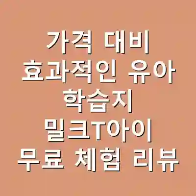 유아 학습지는 어린이의 기초 학습 능력을 키우기 위한 중요한 도구입니다. 최근 밀크T아이와 같은 다양한 유아학습지 서비스가 무료 체험을 제공하여 부모들에게 선택의 폭을 넓히고 있습니다. 이러한 무료 체험을 통해 학습지의 가격 대비 효과성을 직접 검토할 수 있는 기회를 제공합니다. 이 글에서는 밀크T아이의 무료 체험을 바탕으로 가격 대비 효과적인 유아 학습지의 장점을 분석하고자 합니다. 이 글을 통해 밀크T아이의 특징과 장점, 그리고 무료 체험을 활용한 학습지를 선택하는 방법을 알게 될 것입니다.