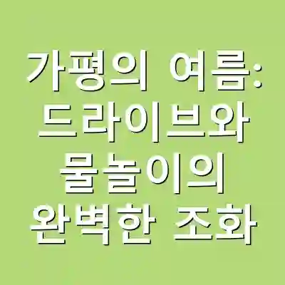 여름이 다가오면 많은 이들이 떠올리는 여행지인 가평. 이곳은 서울 근교에 위치하여 짧은 시간 안에 시원한 물놀이와 즐거운 드라이브를 동시에 즐길 수 있는 최적의 장소입니다. 특히 가평 빠지는 다양한 액티비티와 자연 경관으로 유명하여 매년 여름철 많은 여행객들이 찾는 명소로 자리잡고 있습니다. 이 글에서는 가평에서 드라이브와 물놀이를 만끽할 수 있는 주변 명소와 여행 팁을 소개합니다. 여름 여행을 계획 중이라면 이 글이 좋은 정보가 될 것입니다.