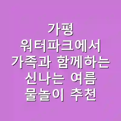 여름이 되면 가족과 함께 시원한 물놀이를 즐기고 싶은 분들이 많을 것입니다. 가평 워터파크는 서울 근교에 위치해 있어 접근성이 뛰어나며, 다양한 액티비티로 여름을 만끽할 수 있는 최적의 장소입니다. 특히 클럽비발디는 방대한 시설과 아름다운 자연경관 덕분에 가족 단위 방문객들에게 인기가 높습니다. 이 글을 통해 가평 워터파크의 매력과 준비물, 이용 방법까지 자세히 알아보실 수 있습니다.