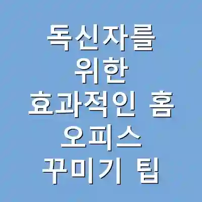 독신자를 위한 홈 오피스 꾸미기는 단순히 공간을 효율적으로 활용하는 것에서 그치지 않습니다. 자신만의 스타일과 편안함을 더하는 것이 중요하며, 이를 통해 생산성을 극대화할 수 있습니다. 이 글에서 제시한 팁들을 통해 나만의 독특한 홈 오피스를 만들어보세요.