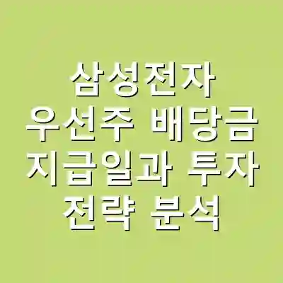 삼성전자는 국내 투자자들 사이에서 가장 주목받는 기업 중 하나로, 특히 우선주에 대한 관심이 높아지고 있습니다. 삼성전자 우선주는 안정적인 배당금 지급으로 투자자들에게 매력적인 선택지로 자리잡고 있습니다. 이번 포스팅에서는 삼성전자 우선주의 배당금 지급일 및 투자 전략에 대해 심층적으로 분석해 보겠습니다. 이를 통해 독자들은 삼성전자 우선주 투자에 대한 중요한 정보를 얻을 수 있을 것입니다.
