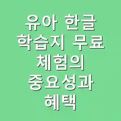 유아 한글 학습지 무료 체험의 중요성과 혜택