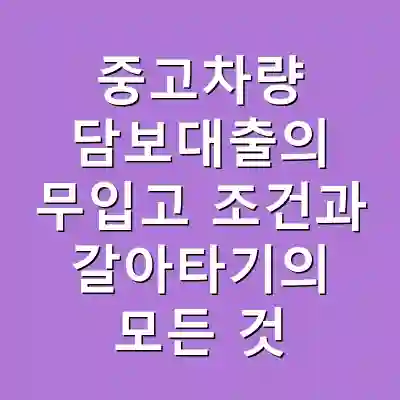 중고차량 담보대출은 차량을 담보로 자금을 대출받는 방법으로, 무입고 조건이 중요한 요소입니다. 대환과 갈아타기를 통해 유리한 조건으로 변경할 수 있으며, 대출 과정에서의 주의 사항을 잘 숙지해야 합니다. 이러한 정보들을 활용하여 현명한 대출 결정을 내리시기 바랍니다.
