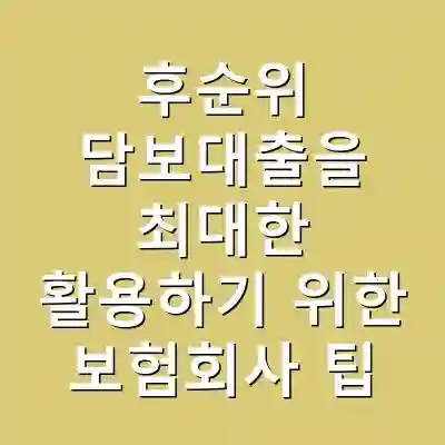 후순위 담보대출을 진행할 때 보험사를 통해 최적의 조건을 확보하는 팁은 여러 가지가 있습니다. 먼저, 여러 보험사에서 제공하는 상품을 비교하여 가장 유리한 조건을 선택하는 것이 중요합니다. 또한, 보험사와의 상담 시 본인의 재무 상황을 정확하게 전달하고, 필요한 경우 전문가의 의견을 구하는 것도 좋습니다. 이를 통해 대출 조건을 개선할 수 있는 기회를 찾을 수 있습니다.